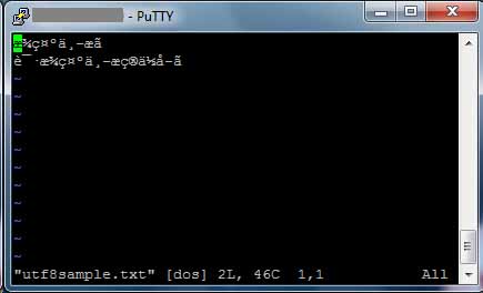• Ici nous testons tout d'abord si notre session SSH PuTTY est en Unicode, en exécutant la commande Shell par un caractère Unicode:
